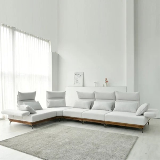 [퍼니챗] 헤라 6인용 코너형 코모도 패브릭 원목 스윙소파 라이트그레이 []